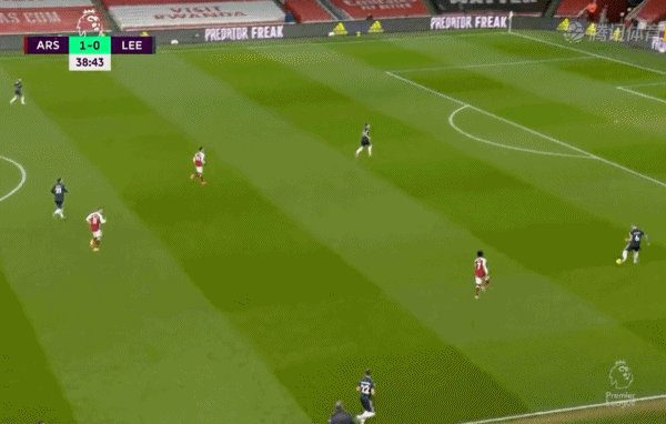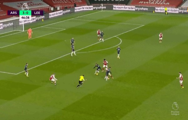 45'萨卡连续盘带制造杀机,随后阿森纳连续传递,塞瓦略斯送穿裆直塞,贝列林小角度破门得分,3比0!