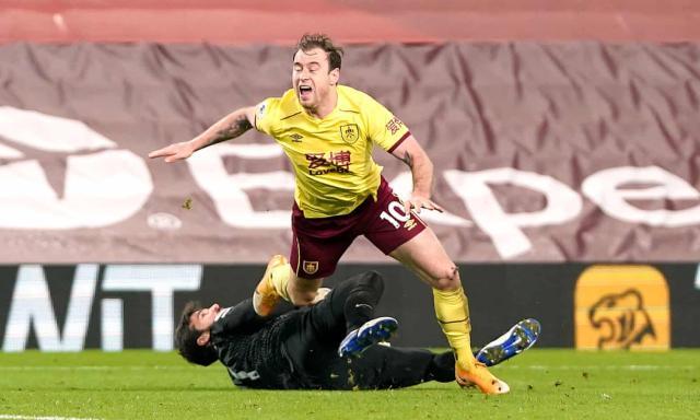 反倒是伯恩利在为数不多的反击机会里,抓住了红军的要害:第82分钟,前场混战中伯恩利球员头球顶回利物浦禁区,彼时3名红军后卫已经到位,离球最近的法比尼奥更已抢占有利身位,但托大的巴西人完全没有注意到身后的巴恩斯,后者后发先至,低身截得皮球,无可奈何的阿利松只能放倒对手,尽管巴西门将坚称自己没有碰到对手,但主裁不为所动指向点球点,巴恩斯走上12码一蹴而就。
