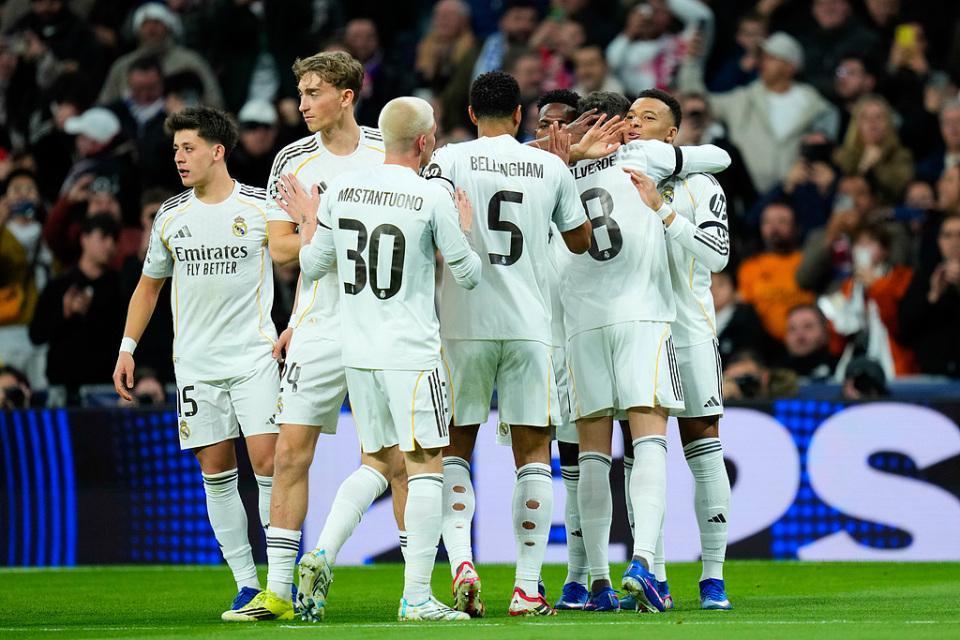 第5分钟,巴尔韦德禁区横传助攻,姆巴佩跟上不停球推射破门,帮助皇马打破僵局第27分钟,维尼修斯带球奔袭至禁区横传助攻,姆巴佩推射完成梅开二度,本赛季欧冠6场打进11球。第32分钟,特泽兜射中柱,皇马逃过一劫。